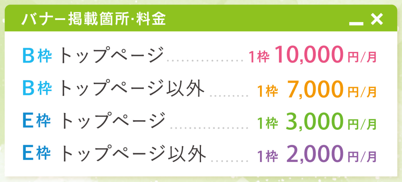 現在、お読みのページの上下に「バナー広告募集中」のバナーが表示されています。そちらで表示位置やイメージをご確認下さい。